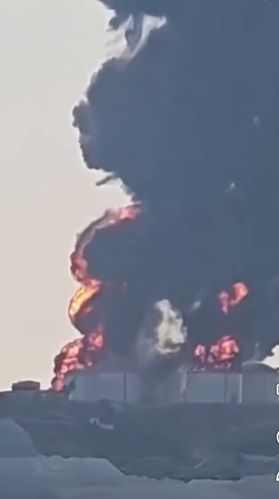 Daha bir zərbə nəticəsində Port of Salalah limanında neft anbarları yanır.