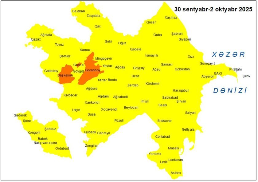 ELAZ.İNFO Ekologiya və Təbii Sərvətlər Nazirliyinin Milli Hidrometeorologiya Xidmətinə istinadən bildirir ki, sentyabrın 30-u gündüzdən oktyabrın…