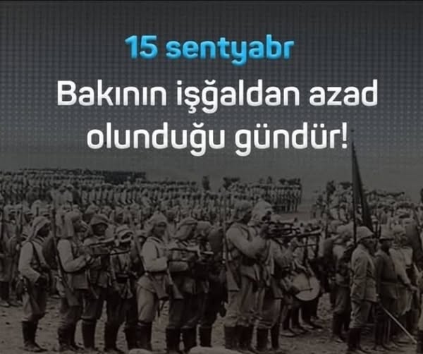 ELAZ.İNFO xəbər verir ki, 1918-ci ilin 15 sentyabrı Azərbaycan tarixinin ən şanlı günlərindən biridir. Həmin gün Qafqaz İslam Ordusu və Azərbaycan Xalq Cümhuriyyəti qəhrəman oğullarının birgə mübarizəsi nəticəsində Bakı daşnak-bolşevik işğalından azad edildi.