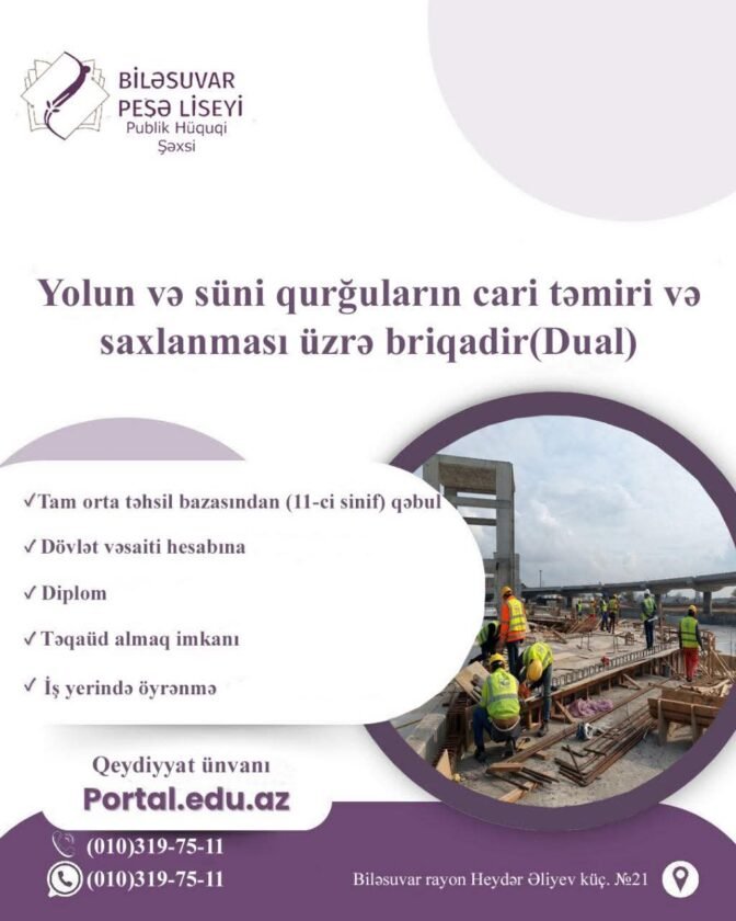 ELAZ.İNFO xəbər verir ki, Biləsuvar Peşə Liseyi 2025/2026-cı tədris ili üzrə “Yolun və süni qurğuların cari…
